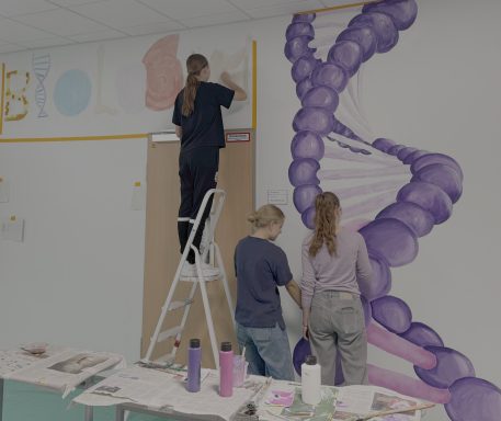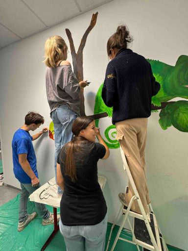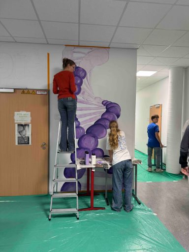 Mit kreativen Ideen und viel Farbe haben Schülerinnen und Schüler der E-Phase den Biologietrakt mit ausdrucksstarken Motiven in einen echten Hingucker verwandelt. In der Diashow kann man den Prozess der Gestaltung mitverfolgen.