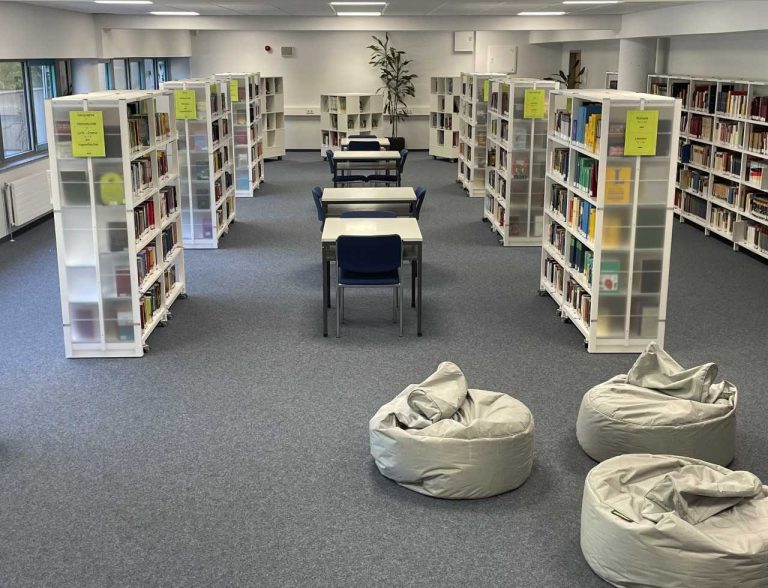 Mit Unterstützung von Herrn Caspar arbeitet täglich ein Team aus ehrenamtlich engagierten Eltern in der Bibliothek. Dadurch können die Schülerinnen und Schüler in den Pausen oder Freistunden Bücher ausleihen, lesen oder Schularbeiten erledigen.