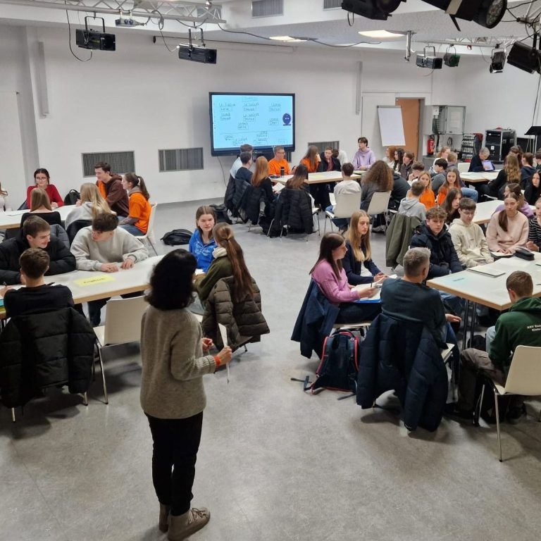 Ein besonderer Fokus lag auf der Wahl der Leistungskurse. In einem Speeddating-Format stellten Lehrkräfte und Schülerinnen und Schüler der Oberstufe die jeweiligen Leistungskurse vor, erläuterten Inhalte, Anforderungen und Arbeitsweisen und standen für Fragen zur Verfügung. Ergänzend gab es Informationen zu den musischen Fächern in der Oberstufe sowie zum noch jungen Angebot Chemie-Bilingual.