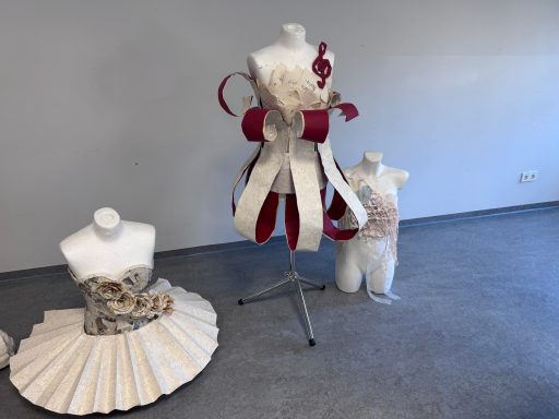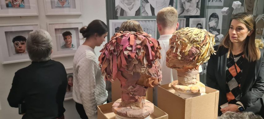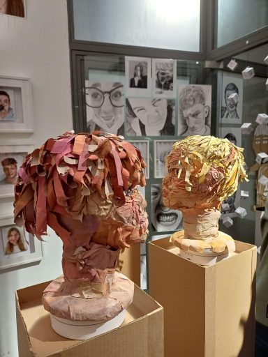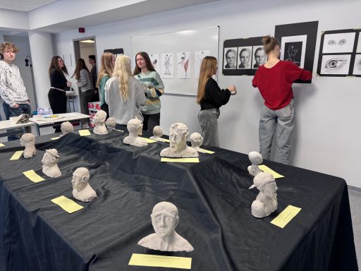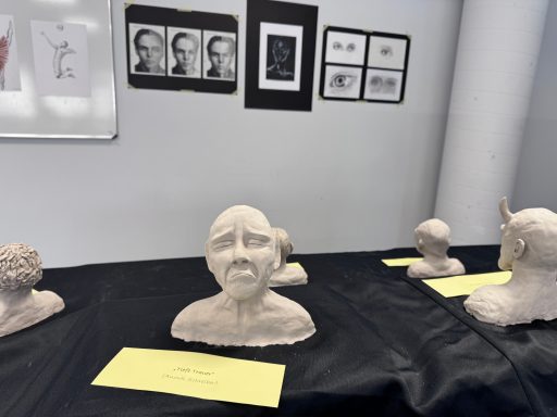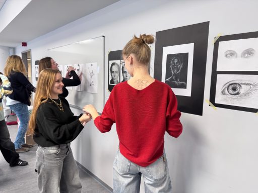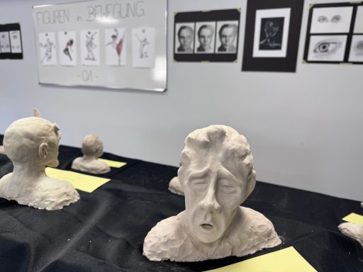Im Raum U4 wurde Kunst erlebbar: Die Kunst-Leistungskurse der Jahrgänge Q1 und Q3 präsentierten unter dem Titel „A Journey Through Art“ eine Auswahl ihrer Arbeiten. Die Ausstellung bot einen vielfältigen Einblick in das künstlerische Schaffen der Oberstufe – von Kunstzitaten über Porträtzeichnungen und -büsten bis hin zu abstrakten Druckgrafiken, Architekturmodellen und Modedesigns.