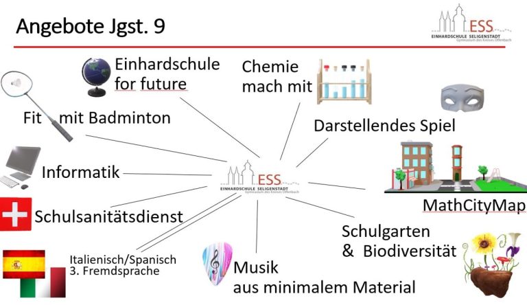 Die hessische Stundentafel sieht für die Jahrgangsstufen 9 und 10 Wahlunterricht vor. An der Einhardschule können die Schülerinnen und Schüler aus mehreren Angeboten auswählen.